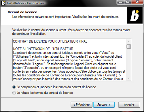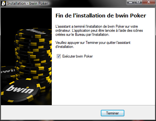 Laissez vous guider pendant le processus et lancez le logiciel de Bwin Poker :
