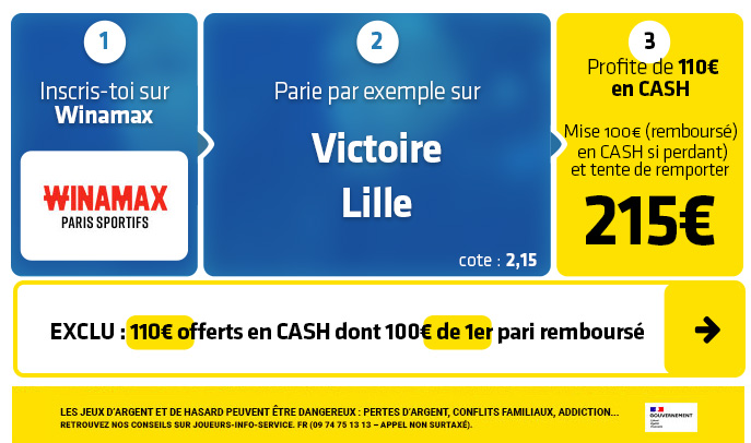 ► 2- Misez par exemple sur le pari "Victoire Lille" (cote à 2,15) chez Winamax :