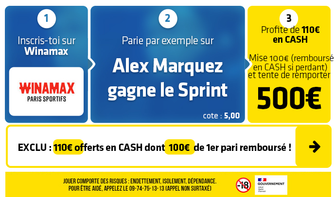 ► 1- Misez par exemple sur le pari "Alex Marquez remporte le sprint" (cote à 5,00) chez Winamax :