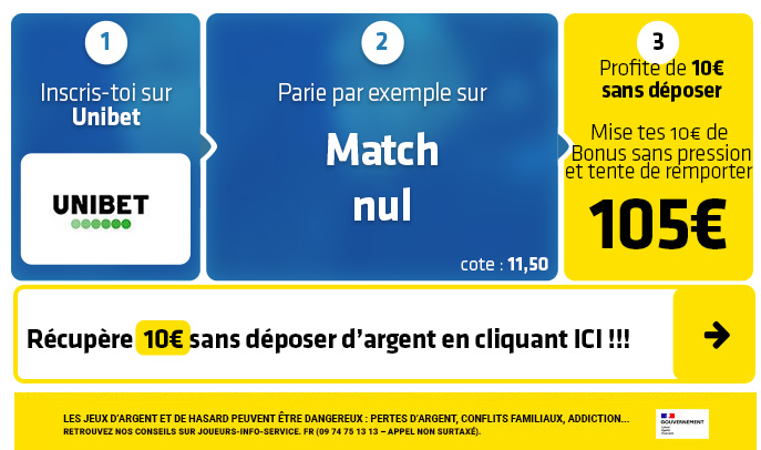 - Misez par exemple votre 1er pari de 10€ sur ce pronostic