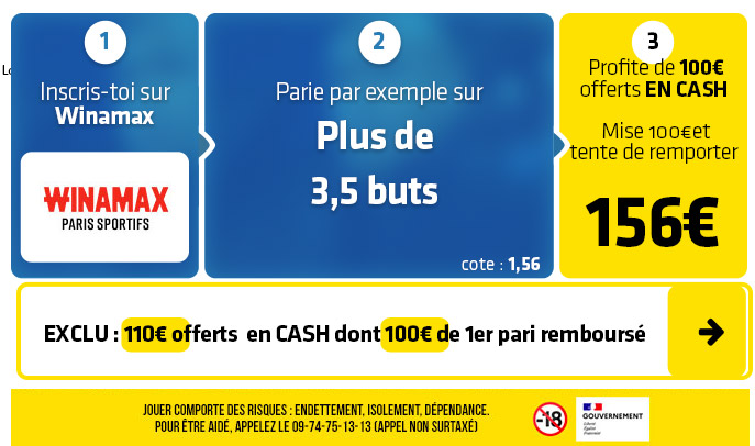 ⇒ ⇒ Cliquez sur ce lien pour récupérez 110€ en EXCLU chez WINAMAX ⇐ ⇐