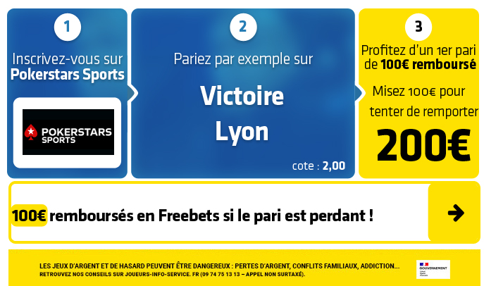 ► 1- Le pari "Victoire Lyon" est coté à 2,00 chez Pokerstars Sports