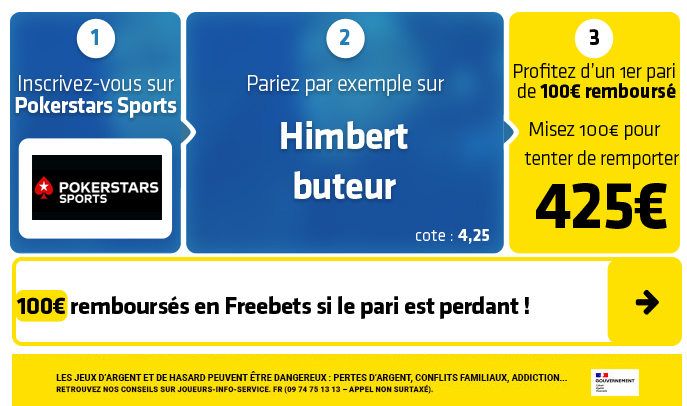 ► 3- Le pari "Himbert buteur" est coté à 4,25 chez Pokerstars Sports