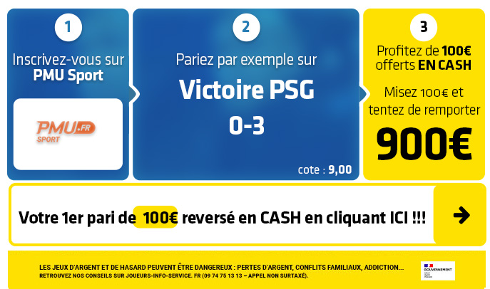 ► Le pari "Victoire PSG 0-3" est coté à 9,00 chez PMU Sport