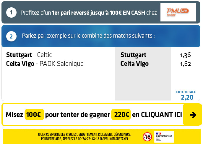 ► Le combiné "Victoire Stuttgart + Victoire Celta Vigo" est coté à 2,20 chez PMU Sport