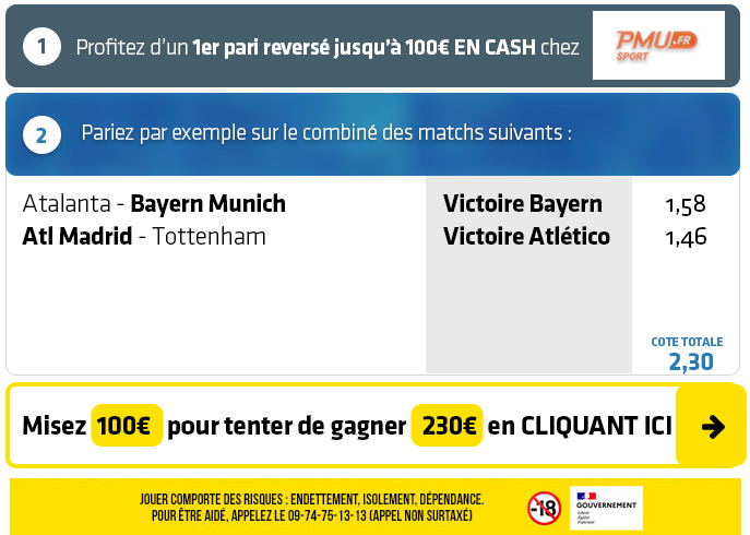 ► Le combiné "Victoire Bayern Munich + Victoire Atlético Madrid" est coté à 2,30 chez PMU Sport