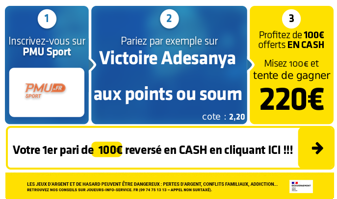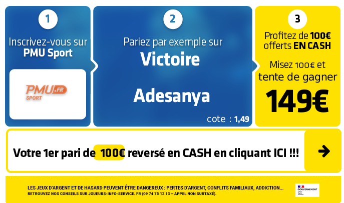 ►1- Le pari "Victoire Adesanya" est coté à 1,49 chez PMU Sport