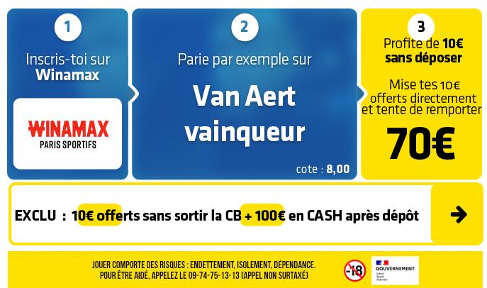 ► Le pari "Van Aert vainqueur" est coté à 8,00 chez Winamax