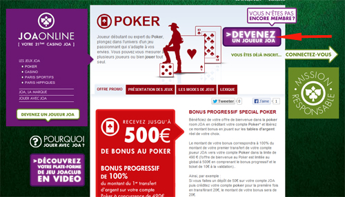 Vous arrivez alors sur cette page ou vous devez cliquer sur "Devenez un Joueur JOA"