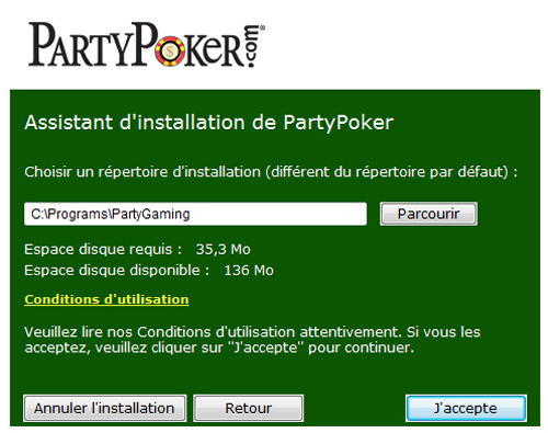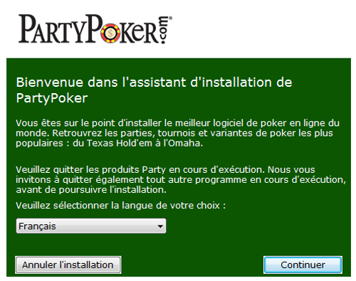 Aprés avoir téléchargé Party Poker vous devez commencer l'installation du logiciel :