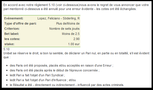 Conseil paris sportifs - L’Annulation due à une erreur du bookmaker