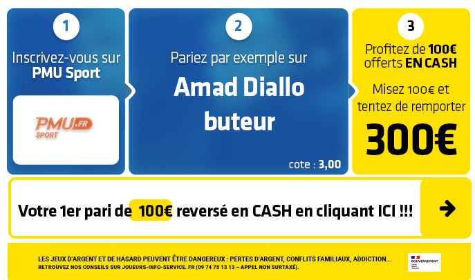 ► Le pari "Diallo buteur" est coté à 3,00 chez PMU Sport