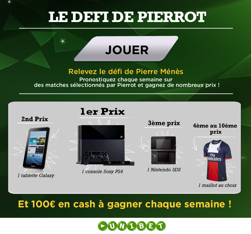 Chaque semaine, relevez le défi de Pierre Ménès sur Unibet en pronostiquant bien les matchs sélectionnés par Pierrot.