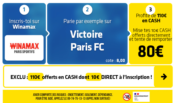 ► Misez par exemple sur le pari "Victoire Paris FC" (cote à 8,00) chez Winamax :
