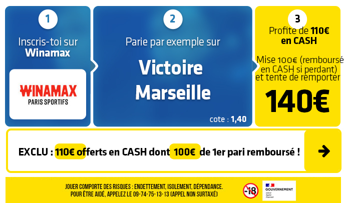 Winamax vous offre 110€ en CASH uniquement chez RDJ :