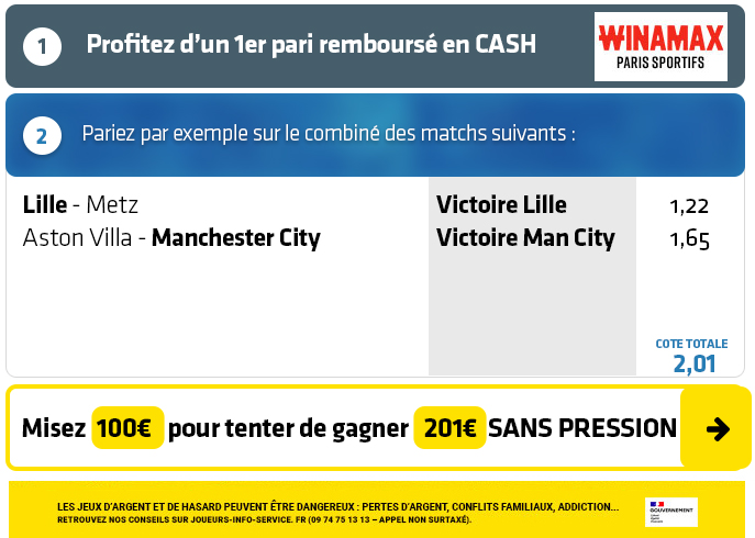 ⇒ ⇒ Cliquez sur ce lien pour récupérez 120€ en EXCLU chez WINAMAX ⇐ ⇐