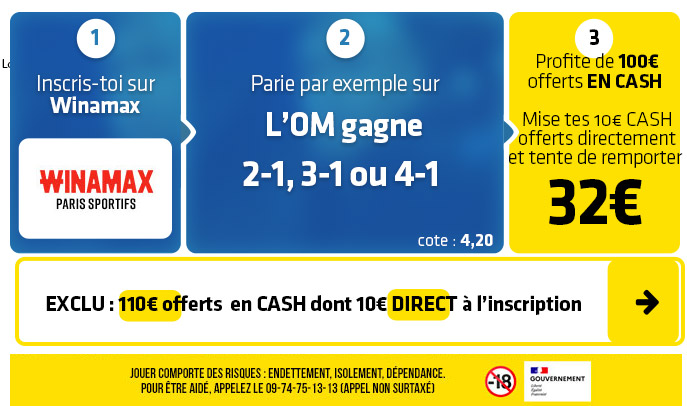 ⇒ ⇒ Cliquez sur ce lien pour récupérez 110€ en EXCLU chez WINAMAX ⇐ ⇐