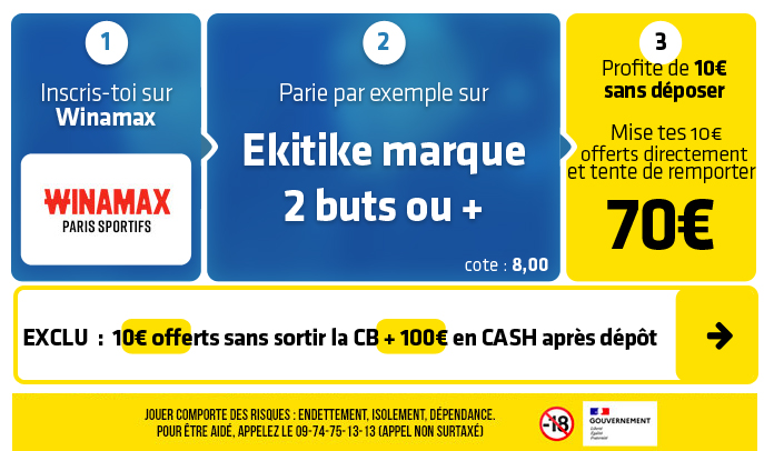 ► Le pari "Ekitike marque 2 buts ou +" est coté à 8,00 chez Winamax