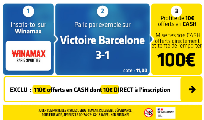 ⇒ ⇒ Cliquez sur ce lien pour récupérez 110€ en EXCLU chez WINAMAX ⇐ ⇐