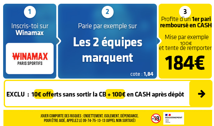 ⇒ ⇒ Cliquez sur ce lien pour récupérez 110€ en EXCLU chez WINAMAX ⇐ ⇐