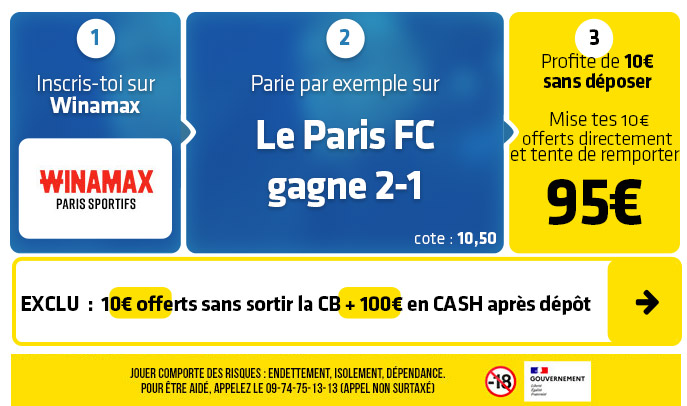 ► Le pari "Le Paris FC gagne 2-1" est coté 10,50 chez Winamax