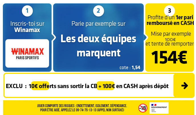 ⇒ ⇒ Cliquez sur ce lien pour récupérer 110€ en EXCLU chez WINAMAX ⇐ ⇐