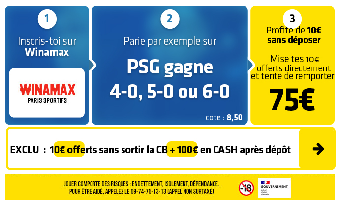 Winamax vous offre un Bonus incroyable de 110€ en EXCLU hez RDJ :