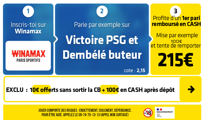 ⇒ ⇒ Cliquez sur ce lien pour récupérer 110€ en EXCLU chez WINAMAX ⇐ ⇐