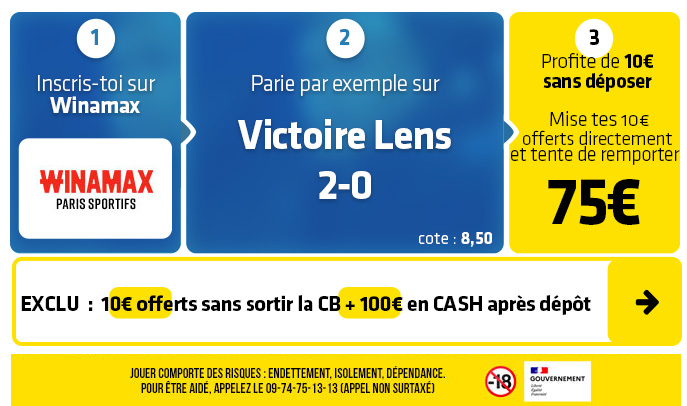 ► Le pari "Victoire Lens 2-0" est coté 8,50 chez Winamax