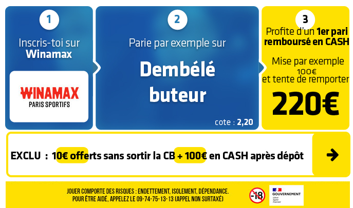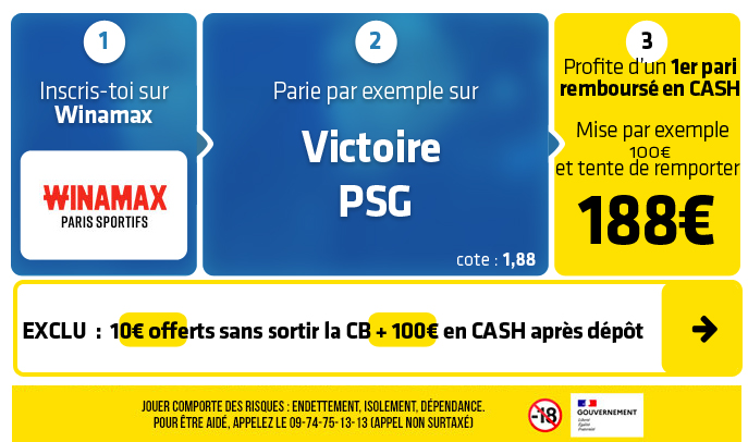 ⇒ ⇒ Cliquez sur ce lien pour récupérer 110€ en EXCLU chez WINAMAX ⇐ ⇐
