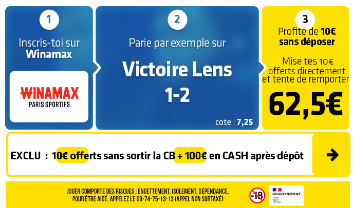 ► Le pari "Victoire Lens 1-2" est coté 7,25 chez Winamax