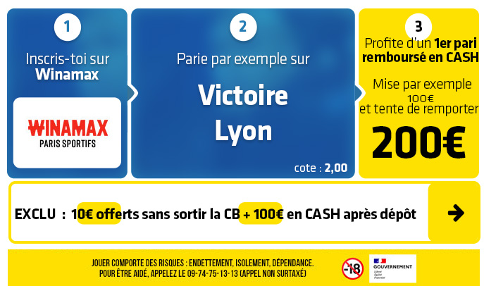 ► 2- Misez par exemple sur le pari "Victoire Lyon" (cote à 2,00) chez Winamax :