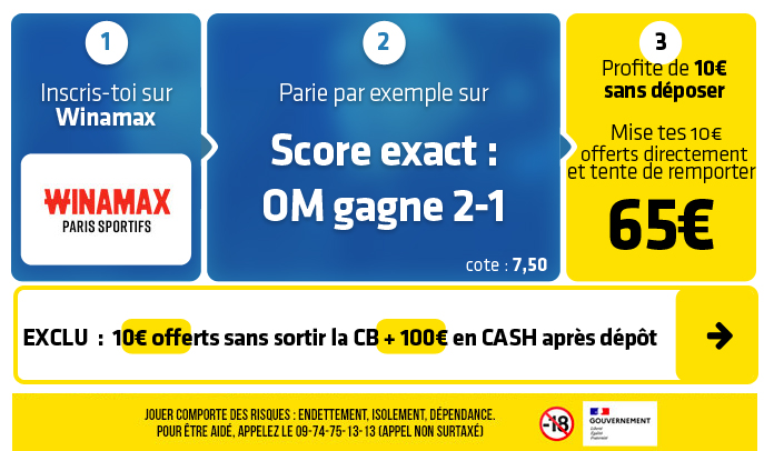 ⇒ ⇒ Cliquez sur ce lien pour récupérer 110€ en EXCLU chez WINAMAX ⇐ ⇐
