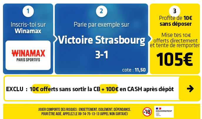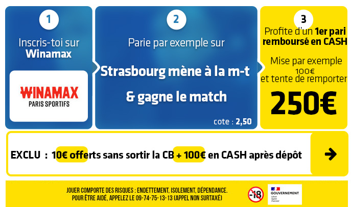 ►Le pari "Victoire Strasbourg 3-1" est coté 11,50 chez Winamax