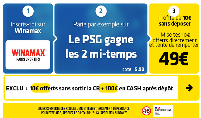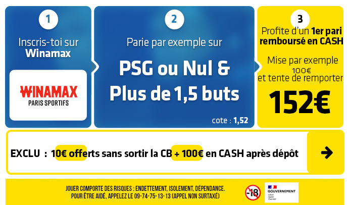 ► 1- Le pari "Le PSG gagne les deux mi-temps" est coté 5,90 chez Winamax