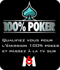 100%Poker, voici le nom de la nouvelle émission de Poker diffusée sur M6 et lancée en partenariat avec le site Everest Poker . Qualifications : Freerolls et Tournois à 1€20 sur Everest Poker