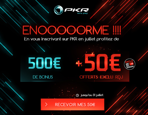 RueDesJoueurs et PKR offrent à tous les nouveaux inscrits un Bonus exclusif de 50€ et une avalanche de cadeaux pour seulement 10€ de dépôt !