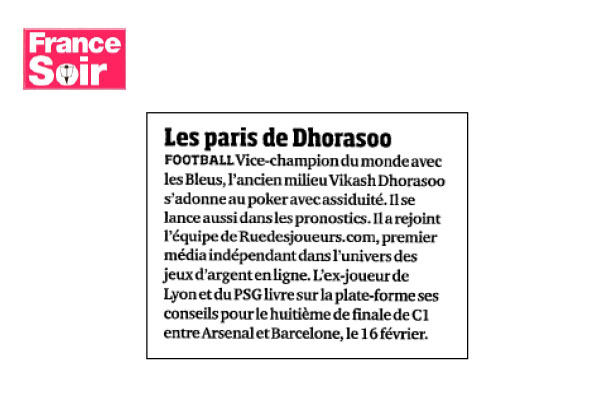 Juillet 2010 - Chronique Hebdomadaire d'Olivier Goulon RuedesJoueurs accueille Vikash Dhorasoo dans son actionnariat |