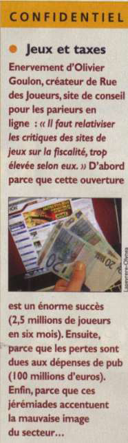 Avril 2010 - Chronique Hebdomadaire d'Olivier Goulon Ouverture du marché : quelles conséquences pour les joueurs français ? |