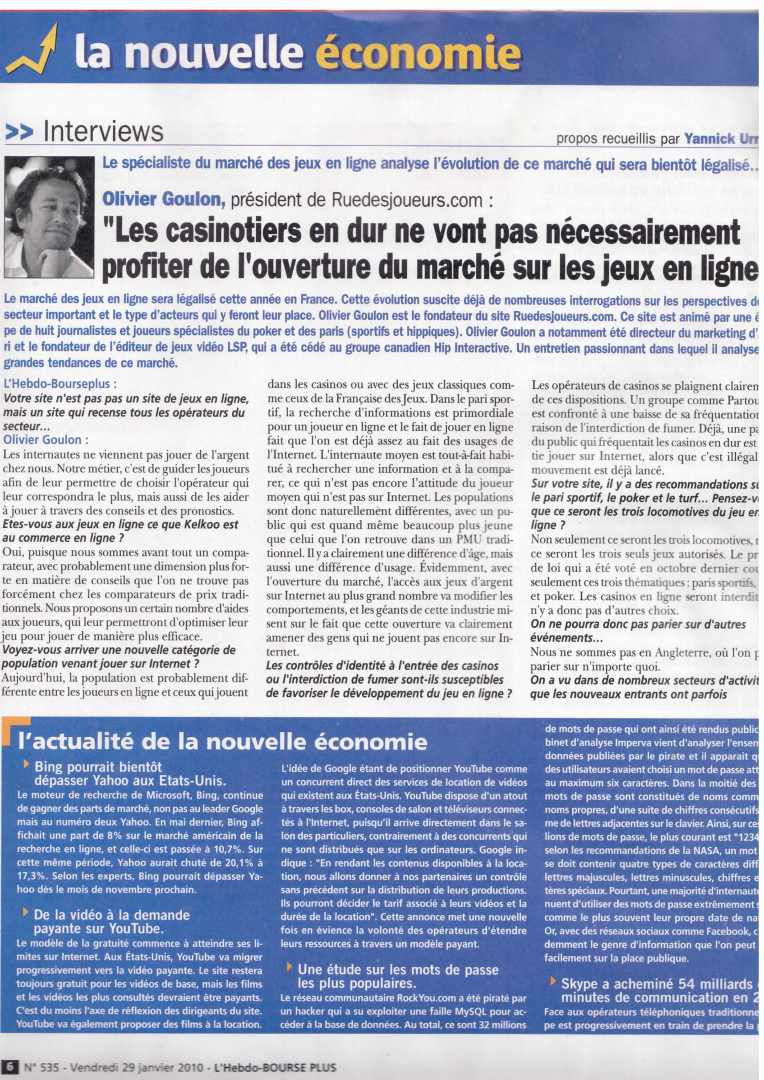 Janvier 2010 Interview d'Olivier Goulon, Président de RueDesJoueurs.com |