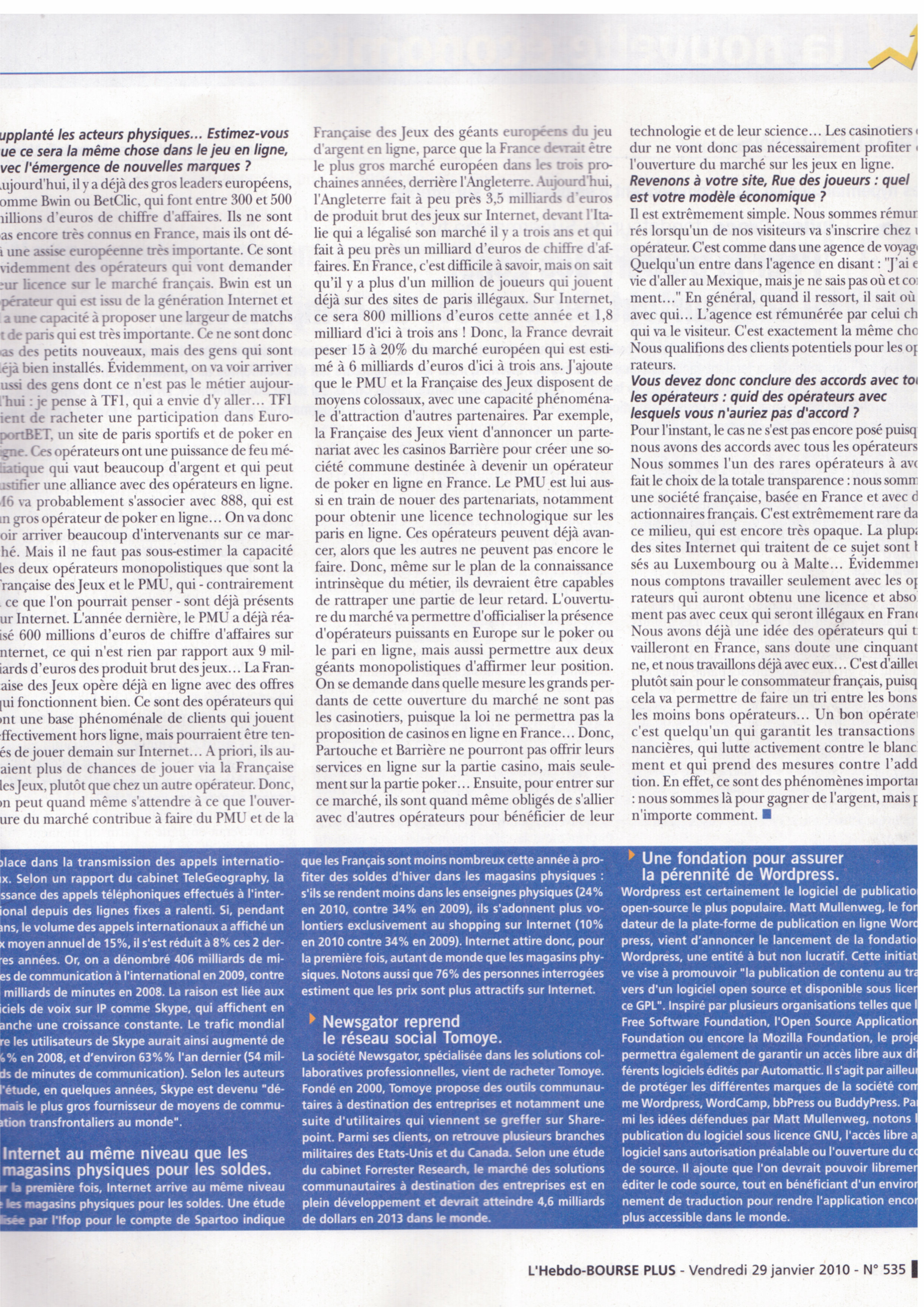 Janvier 2010 Interview Nouvelle Economie : Page 1 et Page 2 |