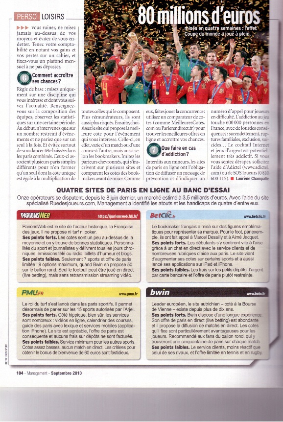 Mars 2010 "Dans la peau d'un bookmaker" : |