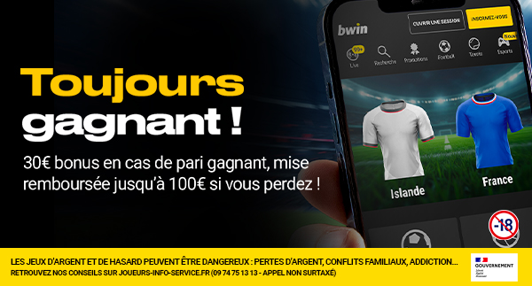 - Inscrivez-vous chez bwin pour récupérer un Bonus exceptionnel de 100€ + 30€ !!!