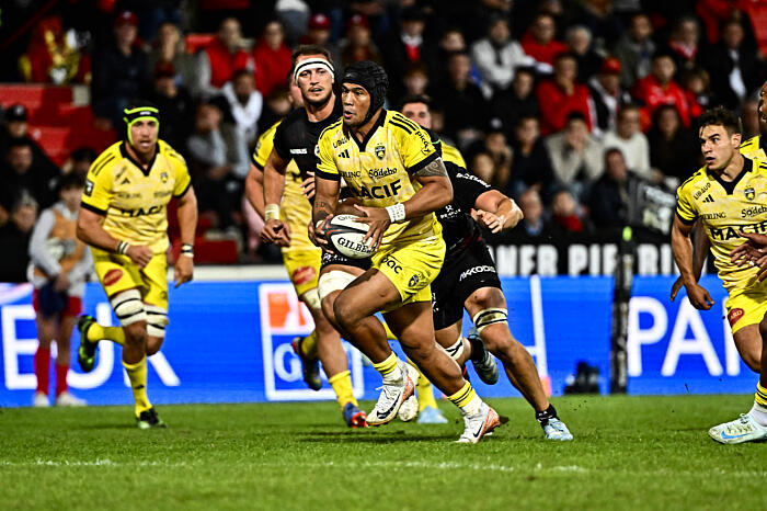 Le XV de La Rochelle : 15. Dulin ; 14. Nowell, 13. Seuteni, 12. Favre, 11.Bosmorin ; 10. Hastoy, 9. Kerr-Barlow ; 7. Haddad-Victor, 8. Alldritt (cap.), 6. Pa. Boudehent ; 5. Skelton, 4. Lavault ; 3. Kuntelia, 2. Sutidze, 1. Wardi.